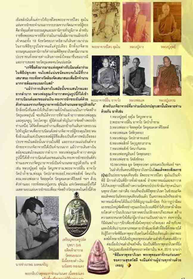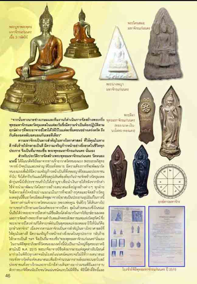 วัดหนองแวง จ.ขอนแก่น จัดสร้างขึ้นในปี พ.ศ.2515 โดยในพิธีนั้นมี สมเด็จพระวันรัต (สมเด็จป๋า วัดโพธิ์) เป็นประธานจุดเทียนชัย และมีพิธีพุทธาภิเษกถึง ๙ วัน ๙ คืนด้วยกัน และได้มีพระเกจิอาจารย์ชื่อดังมาร่วมปลุกเสกหลายท่านด้วยกัน เช่น. ๑ พระอาจารย์ฝั้น อาจาโร วัดป่าถ้ำขาม ๒ หลวงปู่ดุลย์ อตุโล วัดบูรพาราม ๓ หลวงพ่อผาง จิตตคุตโต วัดอุดมคงคาคีรีเขตต์ ๔ หลวงพ่อแพ วัดพิกุลทอง ๕ หลวงพ่อดี วัดศรีสำราญ ๖ หลวงพ่อหนูอินทร์ วัดพุทธคยา ๗ หลวงพ่อลมูล วัดพุทธวงษา แห่ง นครเวียงจันทร์ ๘ หลวงพ่อสิงห์ วัดกุญชรวราราม ๙ หลวงพ่อชาย วัดสังข์ทอง เป็นต้น