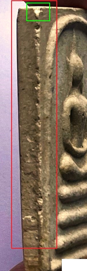 - ด้านหน้า พระมีตำหนิกระเทาะขอบทุกด้าน+ขอบบนด้านหลัง ตามภาพด้านล่าง