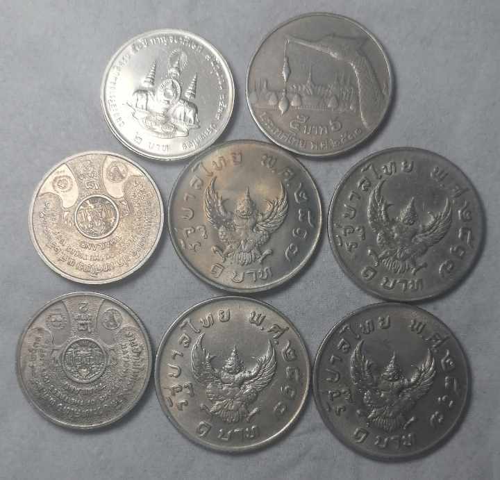 ชุดแรก เหรียญ ๑ บ.หลังครุฑ คัดสวย ๆ 4 เหรียญ ๒ + บ.งานปีต้นไม้ 2 เหรียญ + ๒ บ.กาญจนาภิเษก 1 เหรียญ + เหรียญ ๕ บ.ปี ๒๕๓๐ 1 เหรียญ