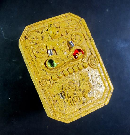รายละเอียด - พระสมเด็จทรงไก่ รุ่นรวยไก่โทน หลวงปู่มหาศิลาเมตตาเขียนยันต์ ตั้งชื่อ อธิษฐานจิต เนื้อเหลืองหน้าฝังพลอย หลังปิดทอง เลข 58