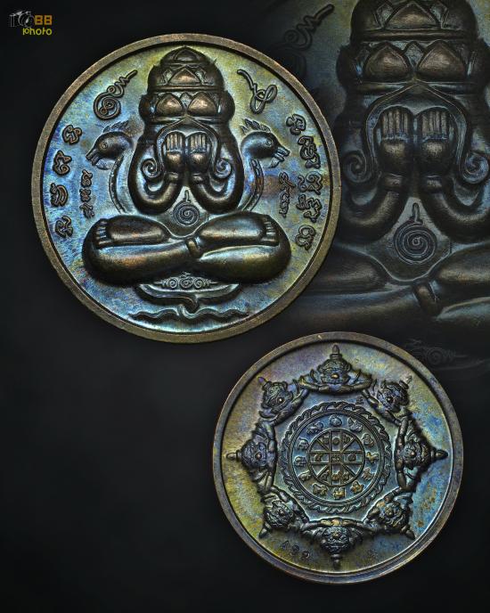 เหรียญปิดตาพังพระกาฬ รุ่นปกเกล้า ปี49 เนื้อนวะกลับดำ ตอกเลข 432 |