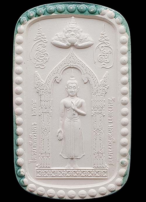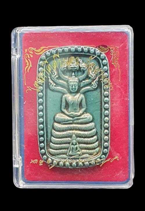 พระนาคปรกไตรภาคีศรีนคร ปี 2548 วัดนางตรา เนื้อกระเบื้องเคลือบ สีเขียว พิมพ์ใหญ่ กล่องเดิม