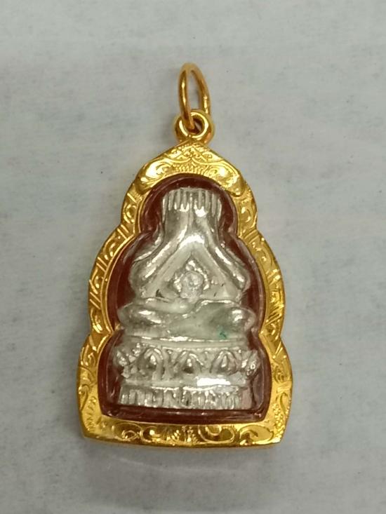 องค์ที่ 5 พระปิดตาสารพัดดี แช่น้ำมนต์ หลวงพ่อเกษม เขมโก เนื้อเงิน รุ่นพุทธคุณ ปี38 สภาพสวย มากมาก เลย เลี่ยมทองพร้อมห้อย