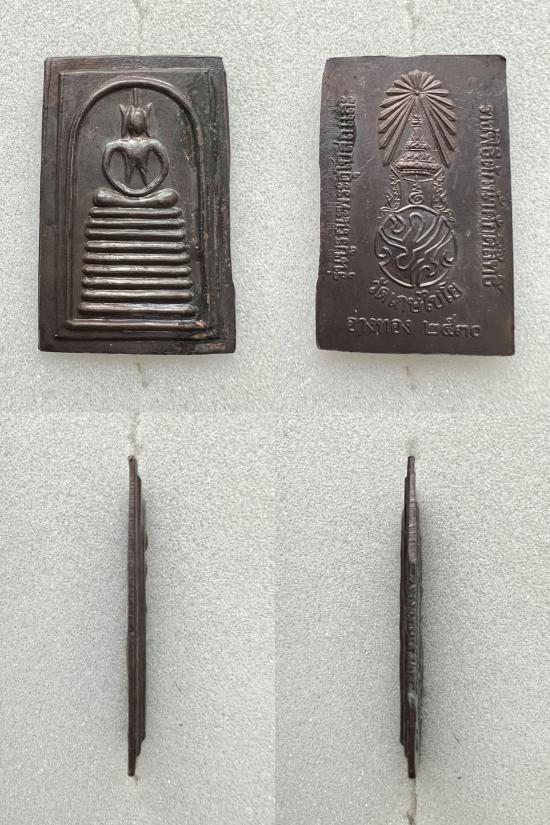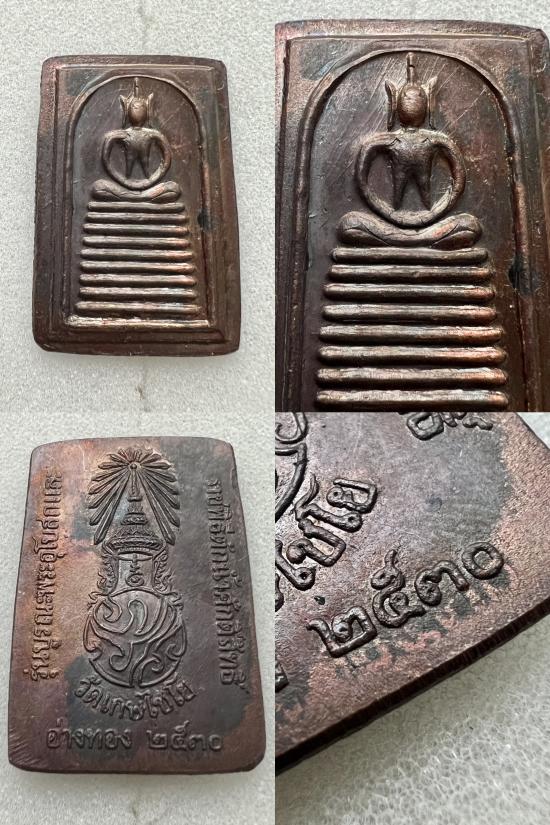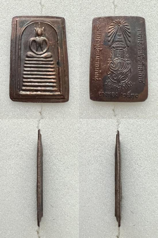 พระสมเด็จเกศไชโย หลัง ภปร. เนื้อทองแดง รุ่นบูรณะพระอุโบสถ และราชพิธีตักน้ำศักดิ์สิทธิ วัดเกศไชโยวรวิหาร จ.อ่างทอง ปี 2530