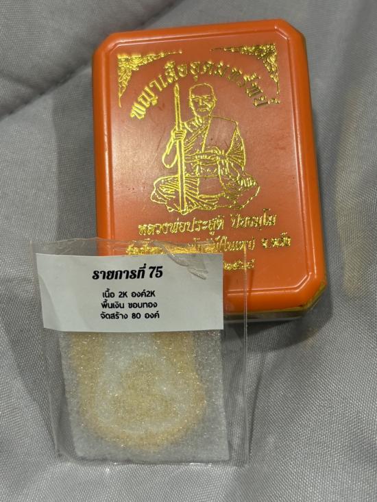 เหรียญเสมาพญาเสืออุดมทรัพย์ พระอาจารย์ประสูติ (หลวงพ่อประสูติ) วัดในเตา ตรัง เนื้อ2K องค์2K พื้นเงิน ขอบทอง หมายเลข 62 พร้อมกล่องเดิม |