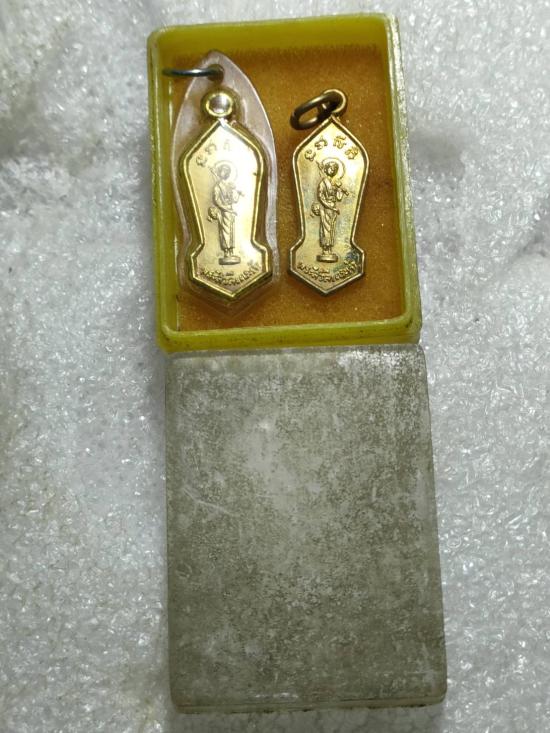 ชื่อพระเครื่อง "เคาะเดียว 2 องค์"เหรียญพระสิวลีเถระเจ้า วัดเกตุมดีศรีวราราม จ.สมุทรสาคร เนื้อทองแดงกะไหล่ทองสวย ปี2519