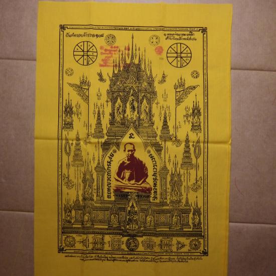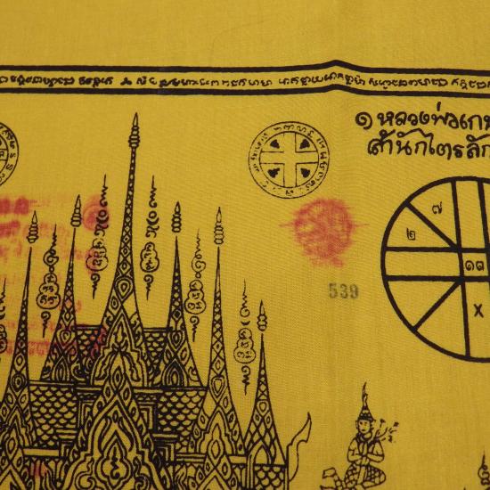 ผืนใหญ่..ขนาด19 X 29 นิ้ว... ผ้ายันต์ครอบจักรวาล 108 หลวงพ่อเกษม รุ่นพุทธคุณ ปี2538 เลข 539 ... 68.12.17