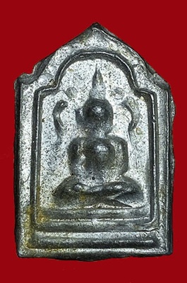 เหรียญหล่อพระพุทธ พระสังวรา(ชุ่ม) วัดพลับ ปี2460 พิมพ์ห้าเหลี่ยม เนื้อตะกั่วผิวปรอท มีบัตรรับรองจีพระ เคาะเดียว |