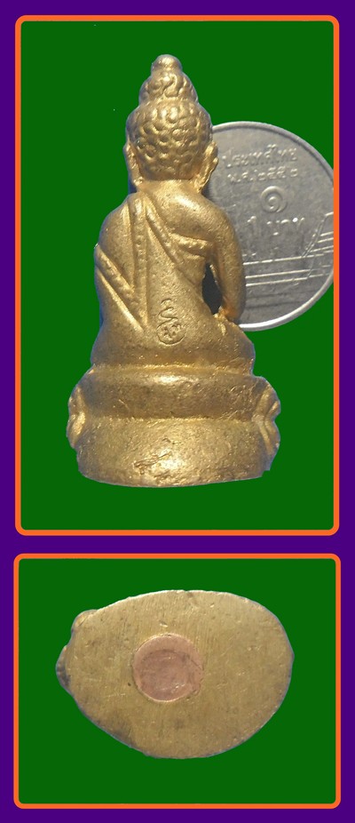 ** พิธีมหาพุทธาภิเษก ปีพศ.2538 เนื้อทองผสมสวยๆ ตอกโค๊ต .ด้านหลัง ผสมชนวนเก่าของวัดสุทัศน์ฯ
