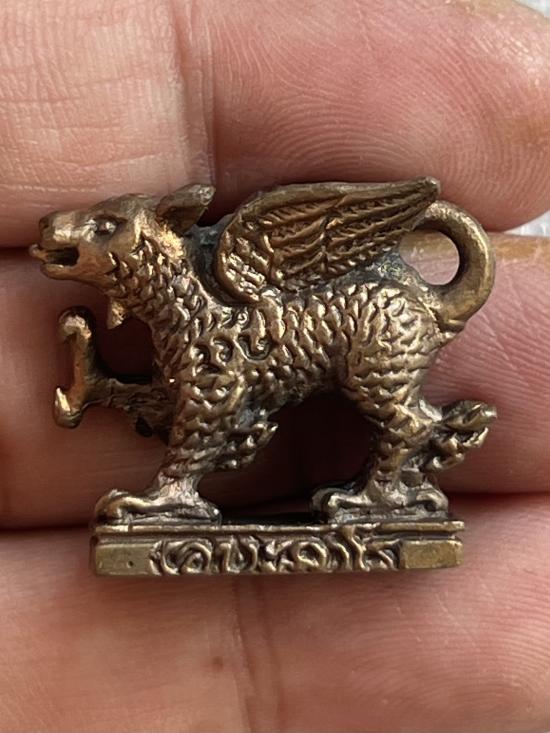 ชื่อพระเครื่อง กิเลนหลวงปู่พรหมมา รุ่นเงินล้าน ปี 2538 เนื้อนวโลหะ วัดสวนหินผานางคอย จ.อุบลราชธานี กล่องเดิม