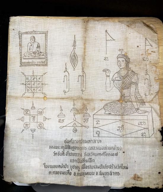 ผ้ายันต์เก่า พ่อท่านคล้ายวัดสวนขัน สภาพเก่าๆเดิมๆตามภาพครับ ขนาด 10x10.5 นิ้วครับ