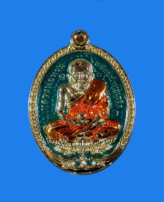 เหรียญหลวงพ่อทวด (ปู่ทวด) ชุดกรรมการ พิเศษ รุ่นเปิดโลก พิมพ์ไข่ หลวงปู่มหาศิลา สิริจันโท เมตตาเขียนยันต์หลังเหรียญ อธิษฐานจิต ออกวัดพระธาตุหมื่นหิน ชุบทองลงยาเขียว No 338