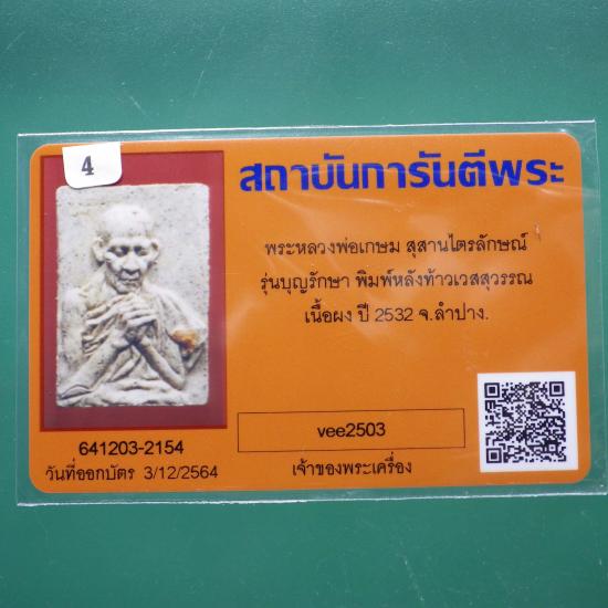 ชื่อพระเครื่อง หลวงพ่อเกษม หลังท้าวเวสสุวรรณ รุ่นบุญรักษา ปี 2532...4....68.4.11