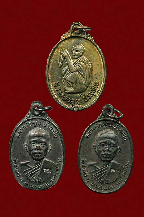 ชื่อพระเครื่อง 3 เหรียญ รุ่นคูณทอง หลวงพ่อคูณ ( มีเนื้อนวะ 1 เหรียญ ครึ่งองค์เนื้อทองแดงรมดำ 2 เหรียญ )