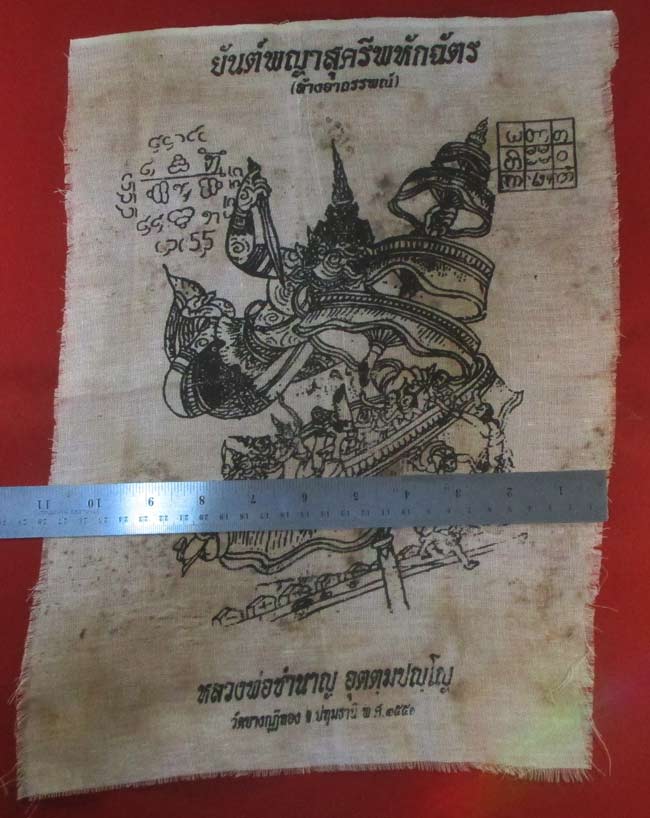 ผ้ายันต์ พญาสุครีพหักฉัตร (ล้างอาถรรพน์) หลวงพ่อชำนาญ อุตตฺมปญฺโญ วัดบางกุฏีทอง จ.ปทุมธานี ครับ (พระบ้าน ครับ) |