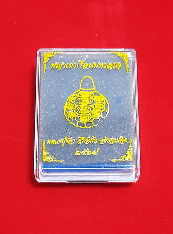 ชื่อพระเครื่อง พญาเต่าเรือน เนื้อมวลสารกะไหล่ทอง พิมพ์เล็ก หมายเลข ๗๕๙ หลวงปู่มหาศิลา สิริจันโท สร้างน้อยเพียง ๔,๙๙๙ องค์ พร้อมกล่องเดิมครับ