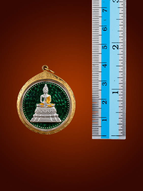 รายละเอียด เหรียญพระพุทธสิหิงค์ กระทรวงคมนาคม เนื้อเงินลงยาเขียว ปีพ.ศ.2539 เลี่ยมทอง 68% พร้อมบัตรรับรอง สวยกริ๊ปครับ