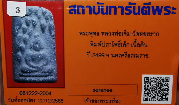 พระพุทธ หลวงพ่อเจิม วัดหอยราก พิมพ์ปรกโพธิ์เล็ก เนื้อดิน ปี2499 จ.นครศรีธรรมราช + บัตรG-pra สภาพเดิมค่ะ |
