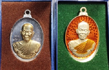 เหรียญ หลวงพ่อคูณ 2เหรียญ รุ่นห่วงเชื่อมรุ่นแรก เหรียญ กรรมการ เนื้อชินตะกั่วหน้ากากทองลำอู่ หมายเลข 668 อัลปาก้าลงยาสีแสด เลข 645 หมายเลขสวย ราคาวัดใจ