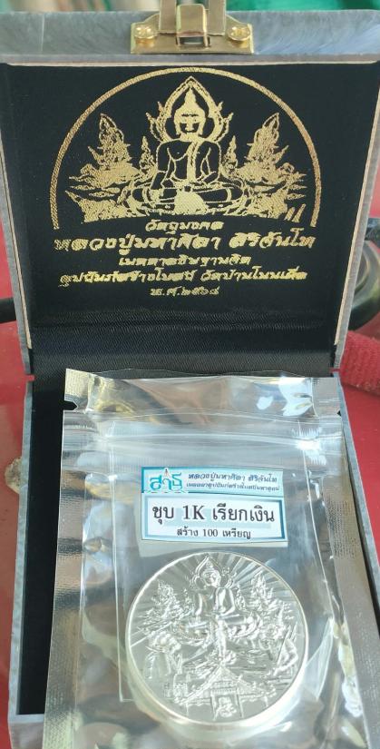 เหรียญแกะสด พุทธศิลป์ "สาธุ" หลวงปู่มหาศิลา สิริจันโท อุปถัมภ์สร้างโบสถ์มหาอุตม์ วัดบ้านโนนเดื่อ เนื้อชุบเงินขัดเงาบางส่วน ชุบ1K เรียกเงิน หมายเลข ๖๔ พร้อมกล่อง สร้าง๑๐๐เหรียญ สวยๆยังกะเนื้อเงิน... |