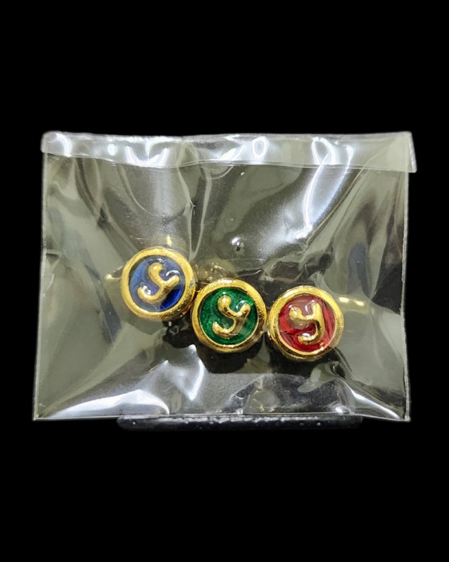 หัวนะโมเสาร์5พิมพ์เล็ก หลังพระราหู ชุบทองลงยา 1ชุดมี3เม็ด พระอาจารย์ไมตรี ปภารตโน วัดพระนคร จ. นครศรีธรรมราช รุ่นรวยแล้ว รวยอีก ปี 2563 พุทธาภิเษก ๒๘ มีนาคม๒๕๖๓ เสาร์ 5