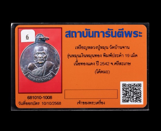 เหรียญหมุนเงินหมุนทอง หลวงปู่หมุน วัดบ้านจาน เนื้อทองแดง บล็อกหนา ประคำ 19 เม็ด นิยมสุด ปี 2542 มาพร้อมบัตรรับรองพระแท้ 1 ใบครับ