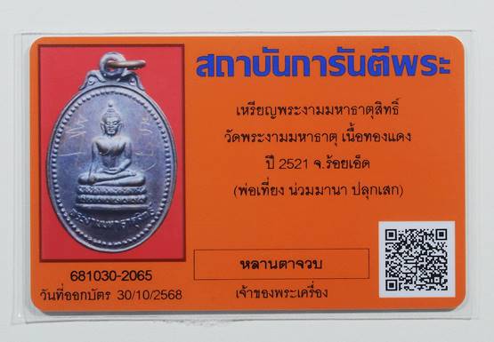 เหรียญพระงามมหาธาตุสิทธิ์ (คุณพ่อเที่ยง น่วมมานา ปลุกเสก) ปี21 สวยๆครับ