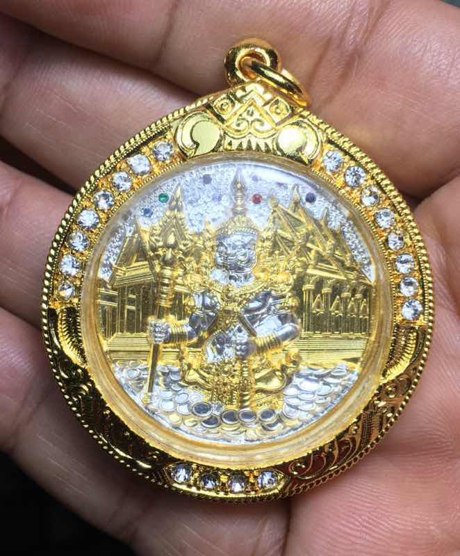 -เหรียญท้าวเวสสุวรรณ รุ่นโชคดี หลวงปู่ฝั้น ปสาโท วัดศรีถมอรัตร์ (หน้าผา) จ.เพชรบูรณ์ 2568 เนื้อ 2K ฝังพลอย เลี่ยมกรอบ สร้าง 50 เหรียญ