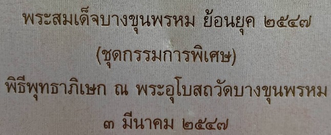 พระสมเด็จบางขุนพรหม รุ่นย้อนยุค 2547 ชุดกรรมการพิเศษ กรรมการใหญ่ทั้งหมด 27 องค์ ผสมผงเนื้อพระสมเด็จบางขุนพรหมที่สมเด็จโตเสก มีทั้งแบบแช่น้ำมนต์ และไม่แช่น้ำมนต์ บรรจุในกล่องอย่างดี