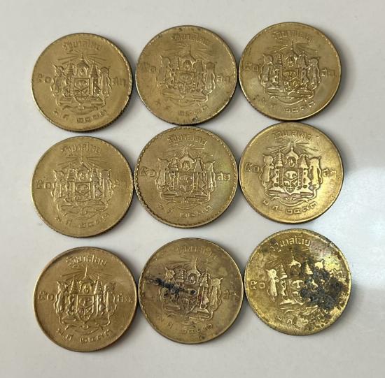 เหรียญ 50 สตางค์ สีทองเหลือง พ.ศ.2493 จำนวน 9 เหรียญ |