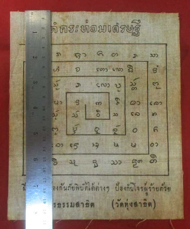 ผ้ายันต์ กระท่อมเศาษฐี วัดวชิรธรรมสาธิต (วัดทุ่งสาธิต) ครับ
