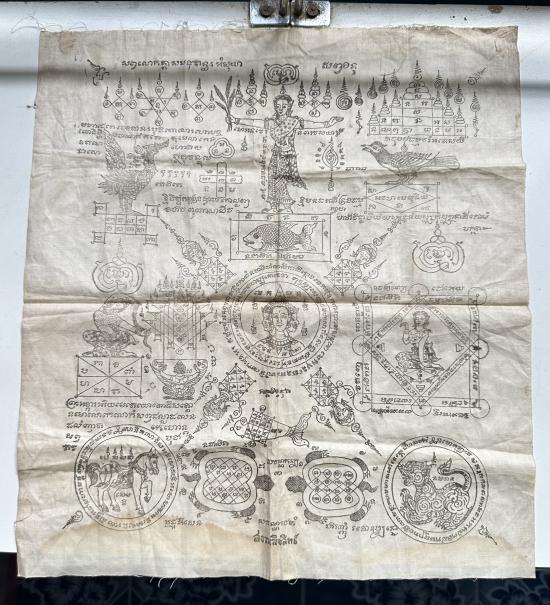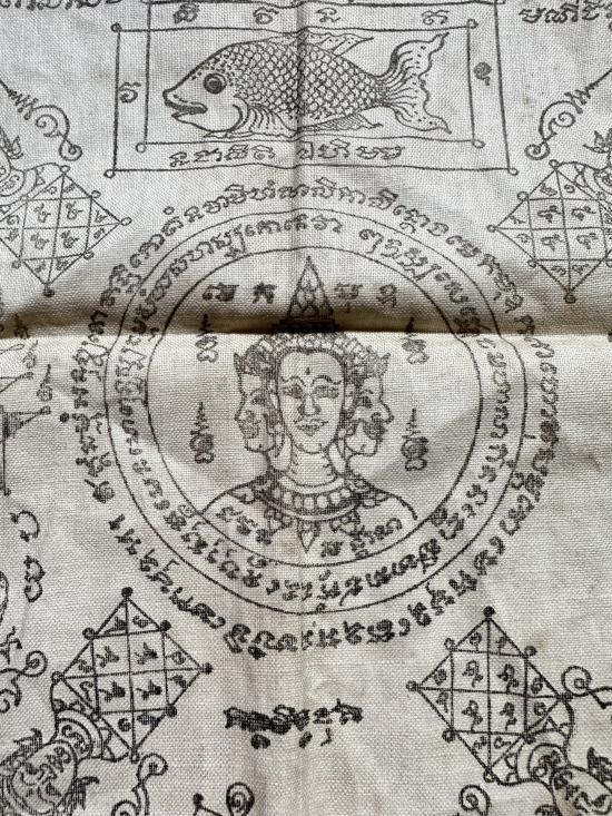 100..ผ้ายันต์พรหม สงวนสิทธิ์ ผ้าเก่ามีอายุ ขนาด 14x15 นิ้ว ไม่ทราบที่สร้าง |