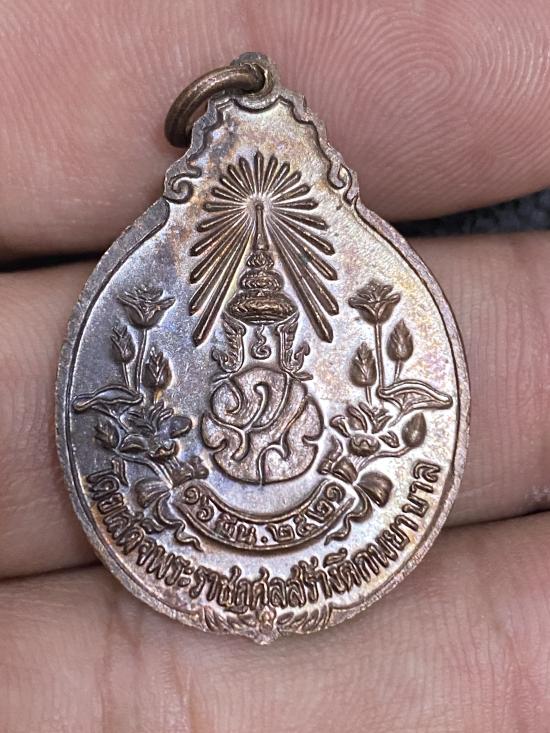 เหรียญรุ่นสร้างโรงพยาบาล หลวงปู่แหวน วัดดอยแม่ปั๋ง พิมพ์หลังภปร.(ใหญ่) เนื้อทองแดง ปี 2521 เคาะเดียว |