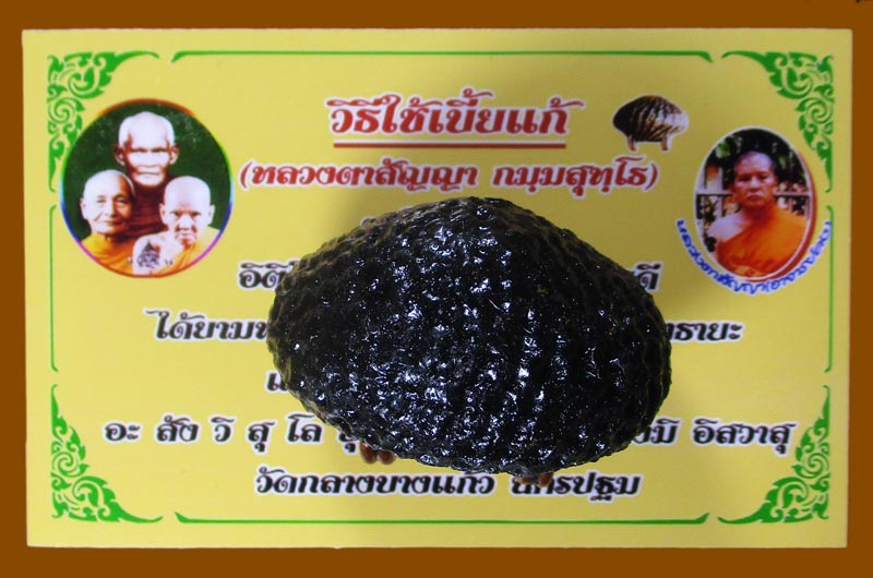 ชื่อพระเครื่อง เบี้ยแก้ถักลงรัก หลวงพ่อสัญญา(คง) วัดกลางบางแก้ว จ.นครปฐม พร้อมใบคาถา
