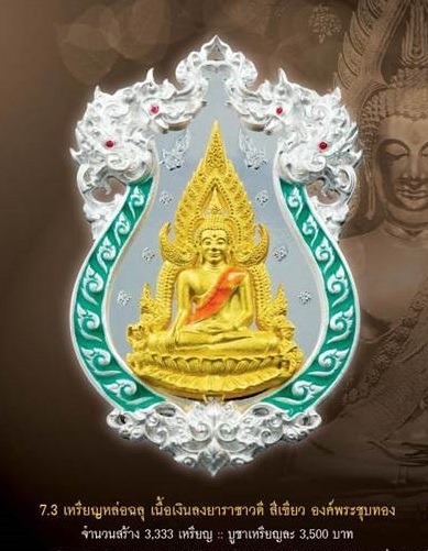 รายละเอียด เหรียญหล่อฉลุพระพุทธชินราช รุ่น จอมราชันย์ วัดพระศรีรัตนมหาธาตุฯ จ.พิษณุโลก ปี 2555 - เนื้อเงินลงยาราชาวดี สีเขียว (องค์พระชุบทอง) หมายเลข 356 (พุทธยันตรี)สภาพสวยกล่องพร้อมครับ -:ซีลเดิมๆครับ