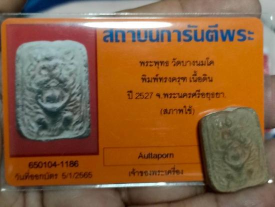 พระพุทธ วัดบางนมโค พิมพ์ทรงครุฑ เนื้อดิน จ.อยุธยา ปี 2527 พร้อมบัตรรับรองการันตีพระ |