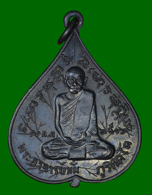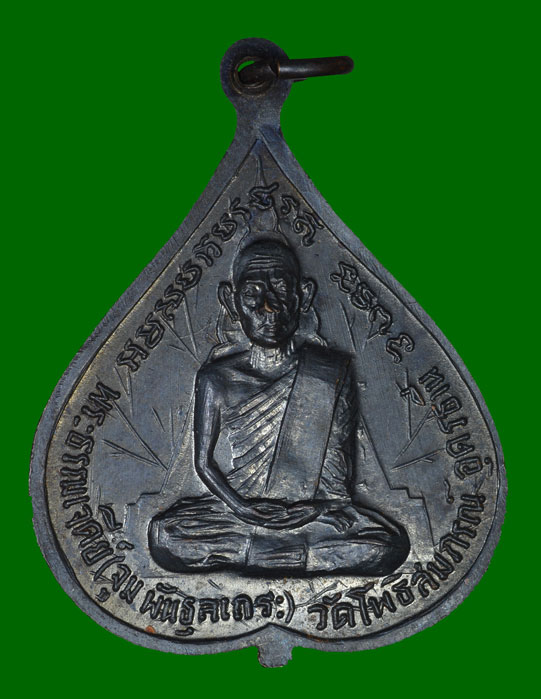 ชื่อพระเครื่อง วัดใจ200ครับเหรียญรูปใบโพธิ์ หลวงปู่มั่น ภริทัตโต หลังพระอาจารย์จูม วัดโพธิสมภรณ์ จ.อุดรธานี เนื้อทองแดงรมดำ ปี 2516