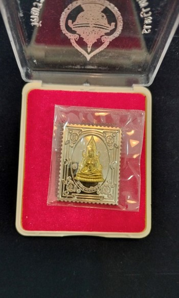 เหรียญแสตมป์ พระพุทธชินราช หลัง สมเด็จพระนเรศวรมหาราช เนื้ออัลปาก้าหน้ากากทองทิพย์ เนื้อประสบการณ์ รุ่น เสาร์ ๕ มหามงคล ปี ๒๕๖๓ |