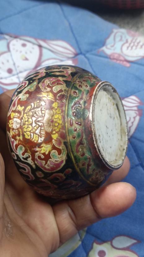 โถลายเบญจรงค์เก่า ขนาดกว้าง 8 ซ.ม สูง 5 ซ.ม