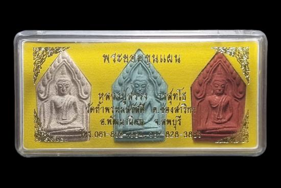 พระขุนแผน พิมพ์ใหญ่ รุ่นแรก ปี 2551 หลวงปู่สรวง วรสุทโธ วัดถ้ำพรหมสวัสดิ์ จ.ลพบุรี ชุดกรรมการ 3 สี ฝังตะกรุด กล่องเดิม ออกวัดชุดละ 1,500 บาท เปิดให้ต่ำกว่าราคาออกวัด