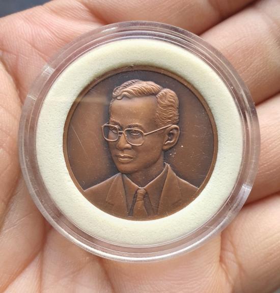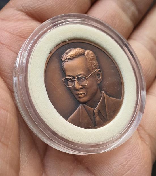 ชื่อพระเครื่อง วัดใจเหรียญในหลวง ครบ 85 ปี วันสถาปนากรมสรรพากร กระทรวงการคลัง ปี 2543 ขนาด 3 ซ.ม.เนื้อทองแดงรมดำซาติน สภาพสวย ตลับเดิม