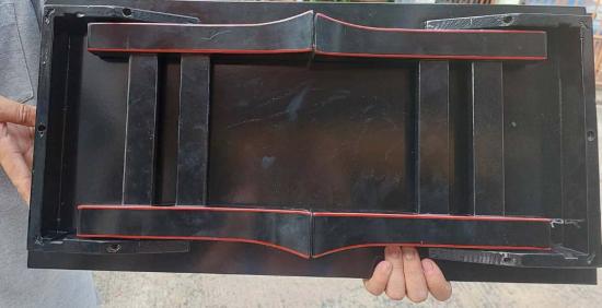 วัสดุและการตกแต่ง: ทำจากไม้และเคลือบด้วยแล็กเกอร์สีดำ โดยมีขอบและปลายขาเป็นสีแดง