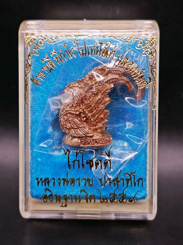 ชื่อพระเครื่อง !!!!วัดใจ 9 บาท!!!! ไก่โชคดี หลวงพ่อรวย ปาสาทิโก วัดตะโก ปี2559 เนื้อทองแดง ค้าขายดีมีกำไร ไปเหนือใต้ปลอดภัย พร้อมกล่องเดิม