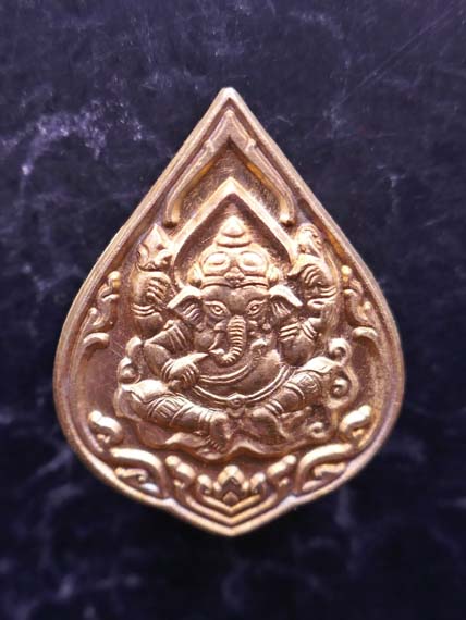 ชื่อพระเครื่อง !!!!วัดใจ 9 บาท!!!! เหรียญพระพิฆเนศ รุ่น รวยสมปรารถนา หลวงพ่อรวย วัดตะโก ปี2555 เนื้อทองทิพย์ พร้อมกล่องเดิม...3376