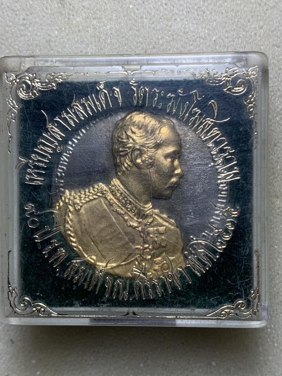 เหรียญ ร.5 รุ่น 90ปี รพ.สมเด็จ ณ ศรีราชา ปี35 เนื้อ 3K หน้าทอง พร้อมกล่อง เคาะเดียวครับ