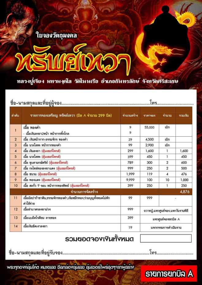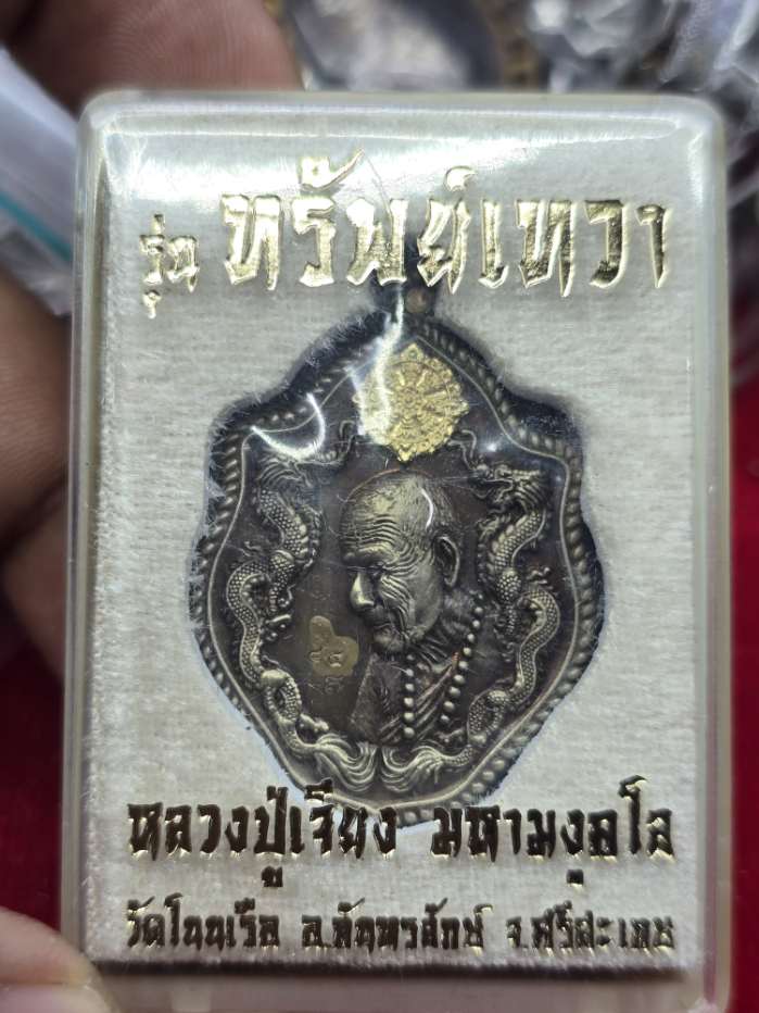 เหรียญมังกรคู่ทรัพย์เทวา หลวงปู่เจียง วัดโนนเรือ เนื้ออัลปาก้าซาติน หมึกเจิมทอง ธรรมจักรทองคําแท้ เลข45 จัดสร้างเพียง 99 องค์ ออกวัด999บาท |
