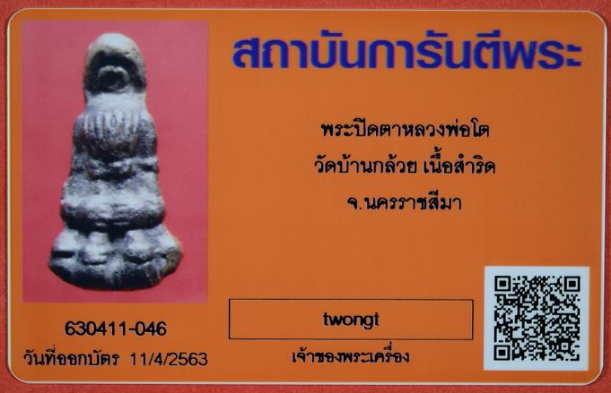 พระปิดตาเดี่ยวหลวงพ่อโต วัดบ้านกล้วย เนื้อสำริด จ.นครราชสีมา พร้อมบัตรรับรอง เคาะเดียวแดง |