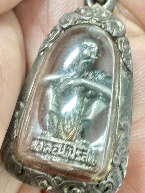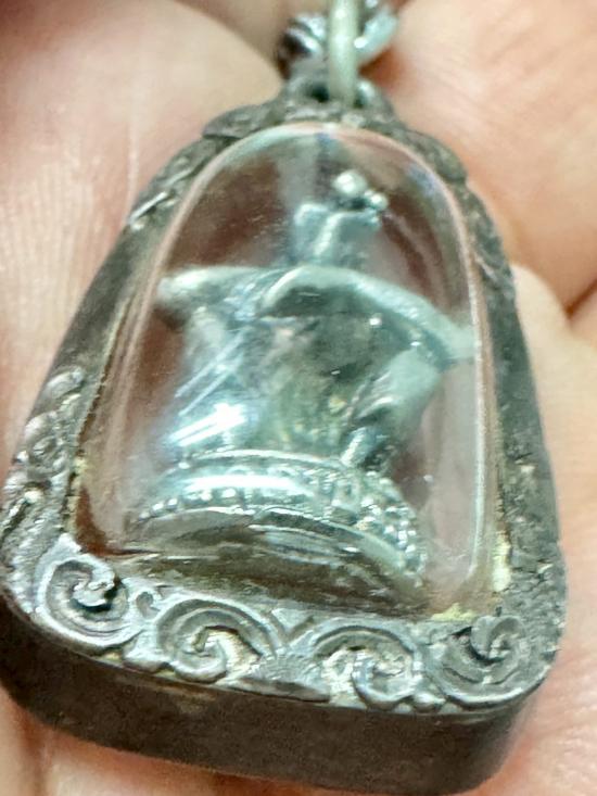 รูปหล่อเหมือน หลวงพ่อคูณ วัดบ้านไร่ นครราชสีมา ปี 2536 เนื้อเงิน พิมพ์นั่งยองเอกลักษณ์ เลี่ยมจับขอบเงินเก่า
