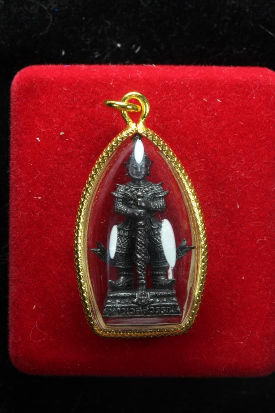 ** พร้อมเลี่ยมไมครอน วัดใจ 100 เดียว **รูปหล่อท้าวเวสสุวรรณ พิมพ์หน้าเทพ หลวงพ่ออิฏฐ์ วัดจุฬามณี เนื้อรมดำ ปี 2562 สมุทรสงคราม สภาพสวยเดิมๆไม่ผ่านการใช้ พร้อมใบคาถา |