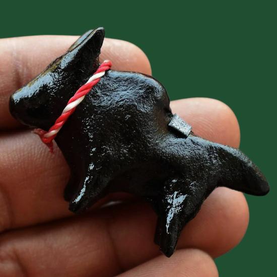 รายละเอียด วัวพยนต์มหามนตรา รุ่นแรก ปี 2557 หลวงปู่เฉลิม วัดบุญนาคประชาสรรค์ จ.สมุทรสงคราม หลวงปู่สร้างไว้จากดินอาถรรพณ์ตามตำรับโบราณ ปั้นลงสูตรทีล่ะตัว รูปแบบจึงแตกต่างกันไป (เพราะเป็นงานปั้นมือทีล่ะตัว) มีโค๊ตกำกับทุกตัว พร้อมซองใบยันต์เดิมจากวัด (หลวงปู่ใช้มวลสารล้วน ตัวประสารน้อย ก่อนนำไปจุ่มรัก) สภาพพระตามรูปที่ลงทุกประการ (ขนาดหัวถึงท้ายยาวประมาณ 4 ซม. + สูงประมาณ 3 ซม.)
